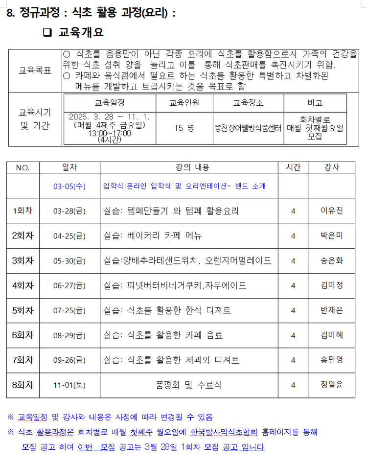 식초 활용과정: 회차별 50,000원 (회차별로 모집)