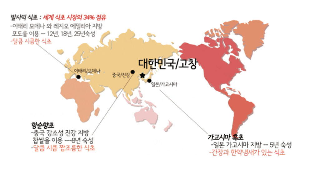고창군과 한국발사믹식초협회는 2019년 11월 1일 '식초문화도시 고창' 선포식을 개최한 후, 식품산업 분야의 우리나라 최초의 식초도시가 되었습니다.